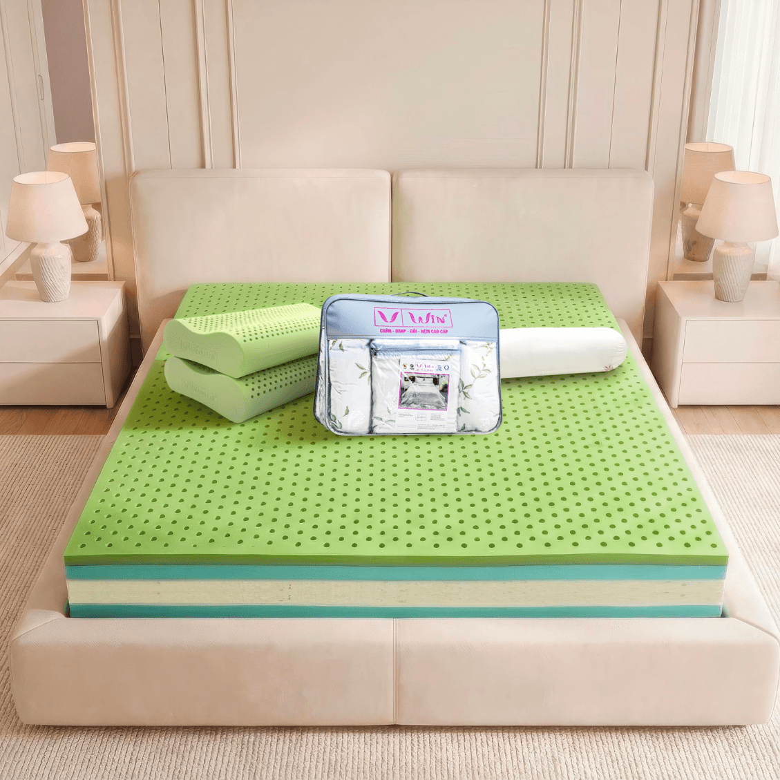 NỆM CAO SU THIÊN NHIÊN ĐIỀU HÒA HYBRID MATCHA COOL THẮNG LỢI